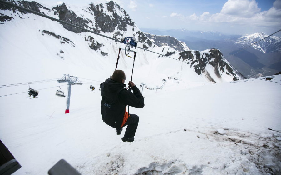 Зиплайн – потрясающее развлечение, идеальное подходящее для всей семьи: на аттракционе могут прокатиться взрослые и дети от 10 лет. До завершения горнолыжного сезона 12 мая зиплайн открыт для лыжников и сноубордистов, далее – для всех желающих.