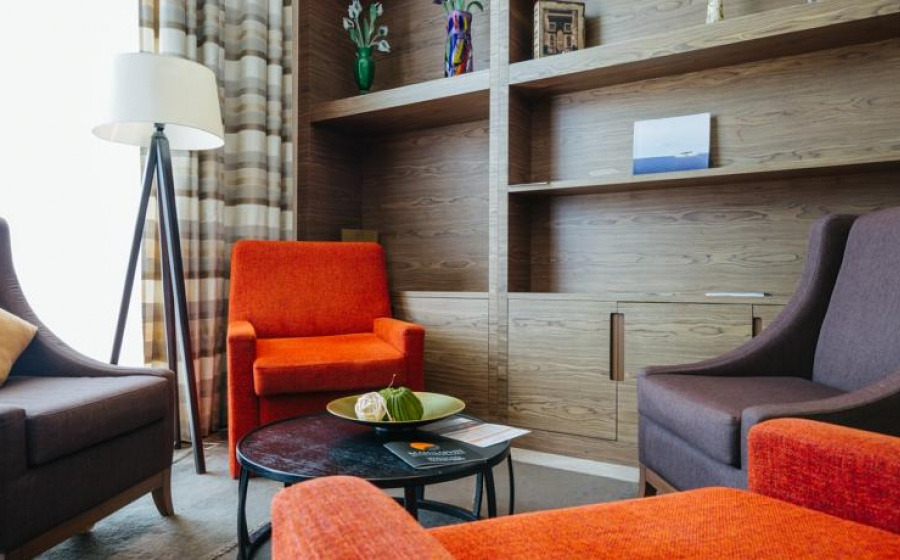 В просторных современных номерах с балконом обустроена гостиная зона с диваном. В числе прочих удобств — мини-бар и телевизор с плоским экраном и спутниковыми каналами. В собственной ванной комнате установлена ванна или душ.