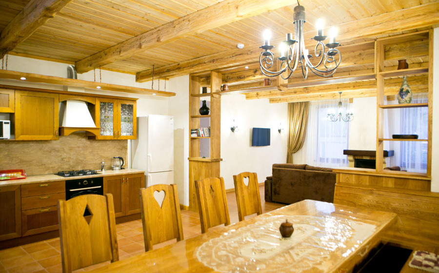 Планировка: 4 спальни с ванными комнатами, гостиная с камином, кухня-столовая в стиле классического шале, большие балконы, летняя терраса.