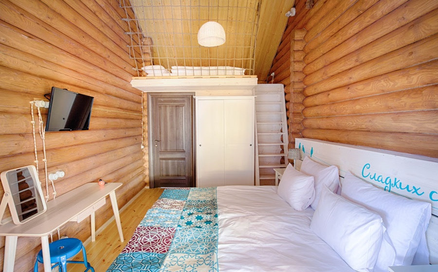 На втором этаже две спальни с гардеробной, балконом и санузел. Также в каждой комнате имеются эксклюзивные полати с ограждениями для детишек. На первом этаже полноценная ванная комната с душевой кабиной и стиральной машиной. В каждой комнате по телевизору.
