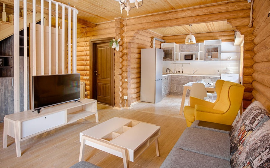 В каждом доме: 2 санузла, просторный холл на первом этаже с двухспальным диваном, сушилка для горнолыжной одежды и сейф, высокоскоростной Wi-Fi доступ.