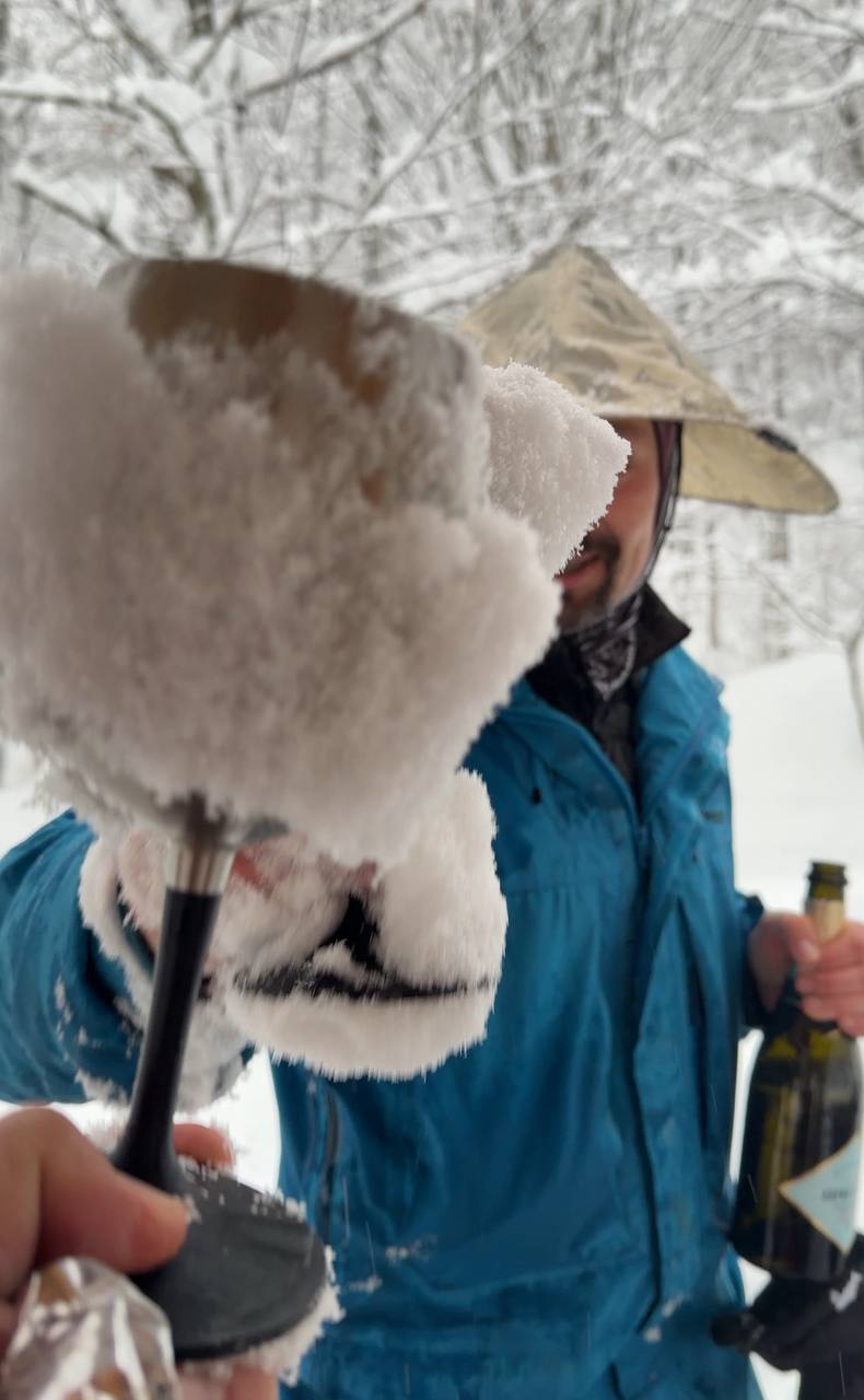Каталка была весьма неплоха с учётом погодных кондиций. Любители фрирайда раскатывали свои любимые нычки, а трассовое катание, по отзывам друзей, тоже было вполне норм. Заодно все проверили свои мембранные куртки.