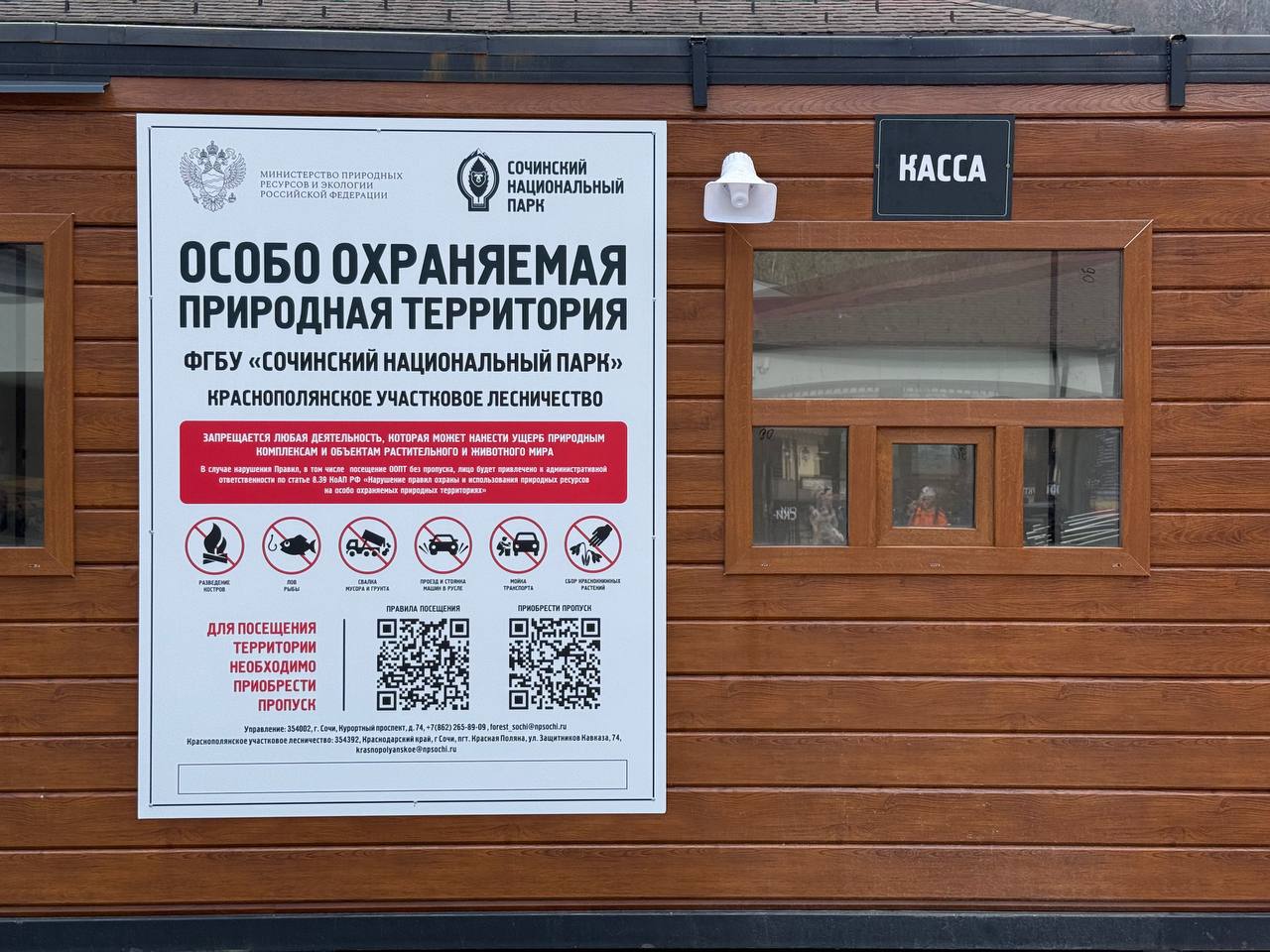 Также пропуск можно оформить непосредственно на КПП Сочинского национального парка, в том числе, установленных у входов на канатные дороги на курортах „Роза Хутор“, „Газпром Поляна“ и „Курорт Красная Поляна“. КПП у горнолыжных курортов начнут работу в апреле 2026 года, а до этого времени необходимо оформлять пропуск онлайн.