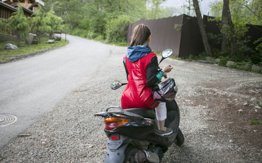 Так же и на мотороллере — хорошо работает как средний слой и, если сверху надеть куртку, ветром не продувает поясницу.